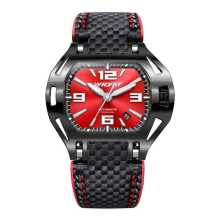 Schwarze Automatikuhr mit rotem Zifferblatt SX8