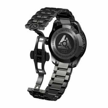 La caja grabada de acero inoxidable de grado 516L, la corona atornillada, la parte posterior de la caja y la pulsera de metal se benefician de DLC (Diamond-Like Carbon). Esta tecnología de recubrimiento única aumenta considerablemente la durabilidad del reloj y es el recubrimiento negro más duro y resistente disponible.