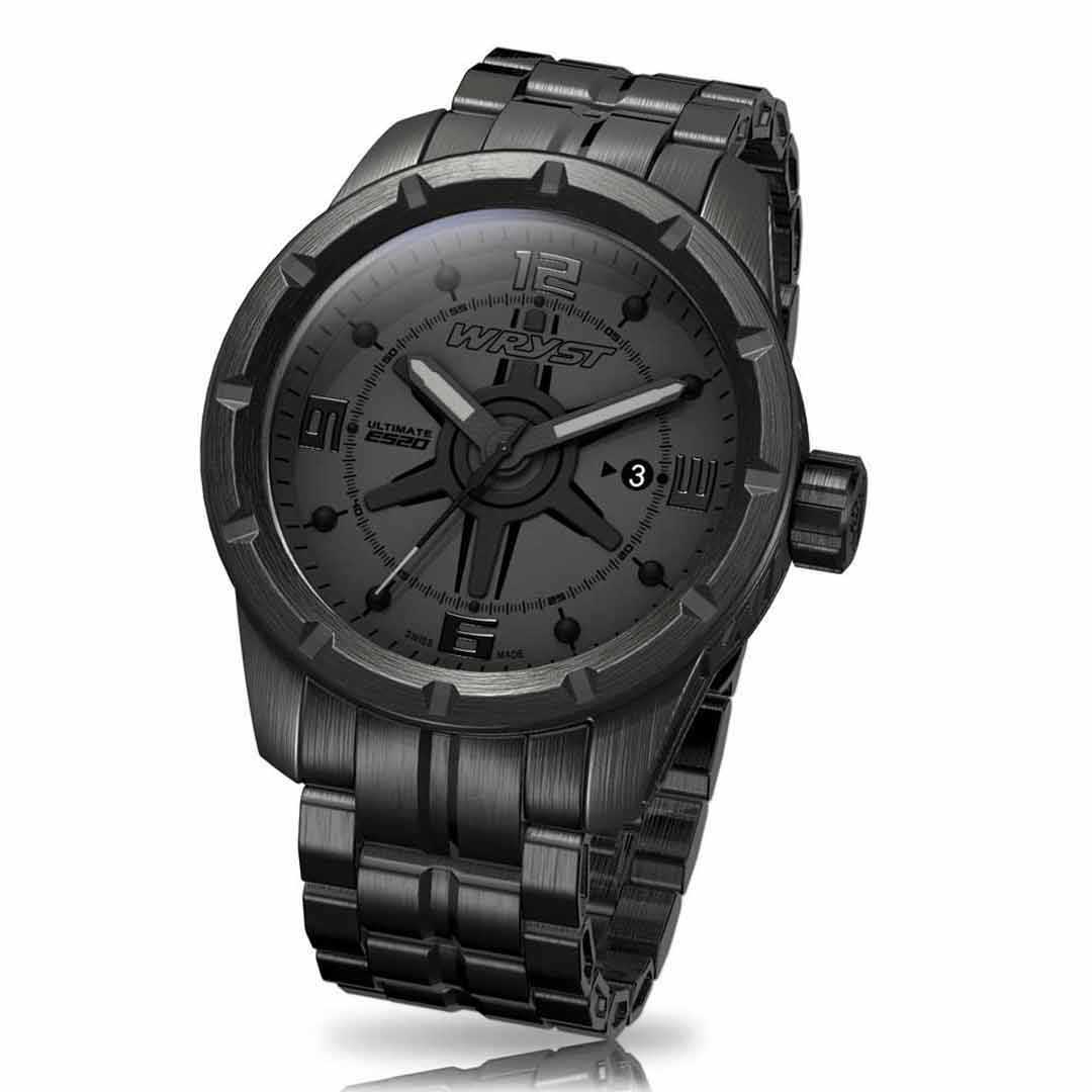 Reloj suizo de acero negro Wryst Ultimate ES20 producido exclusivamente en edición limitada de 99 piezas. El negro es el color más seguro y fresco que desearías para un reloj deportivo suizo de acero.